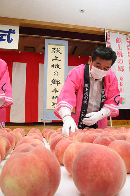 皇室や宮家へ献上する桃のことを献上桃といいます。その献上桃に長年選ばれているのが福島県産の主力品種「あかつき」。県北部の代表的な産地である桑折町は1994年から県の指定を受け、毎年献上を続けています。