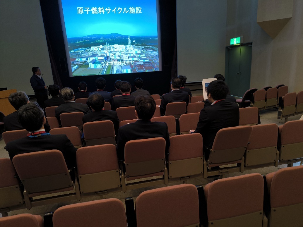 PRセンターで立地地域の歴史・特性、原子燃料サイクル事業の概要について説明を受ける