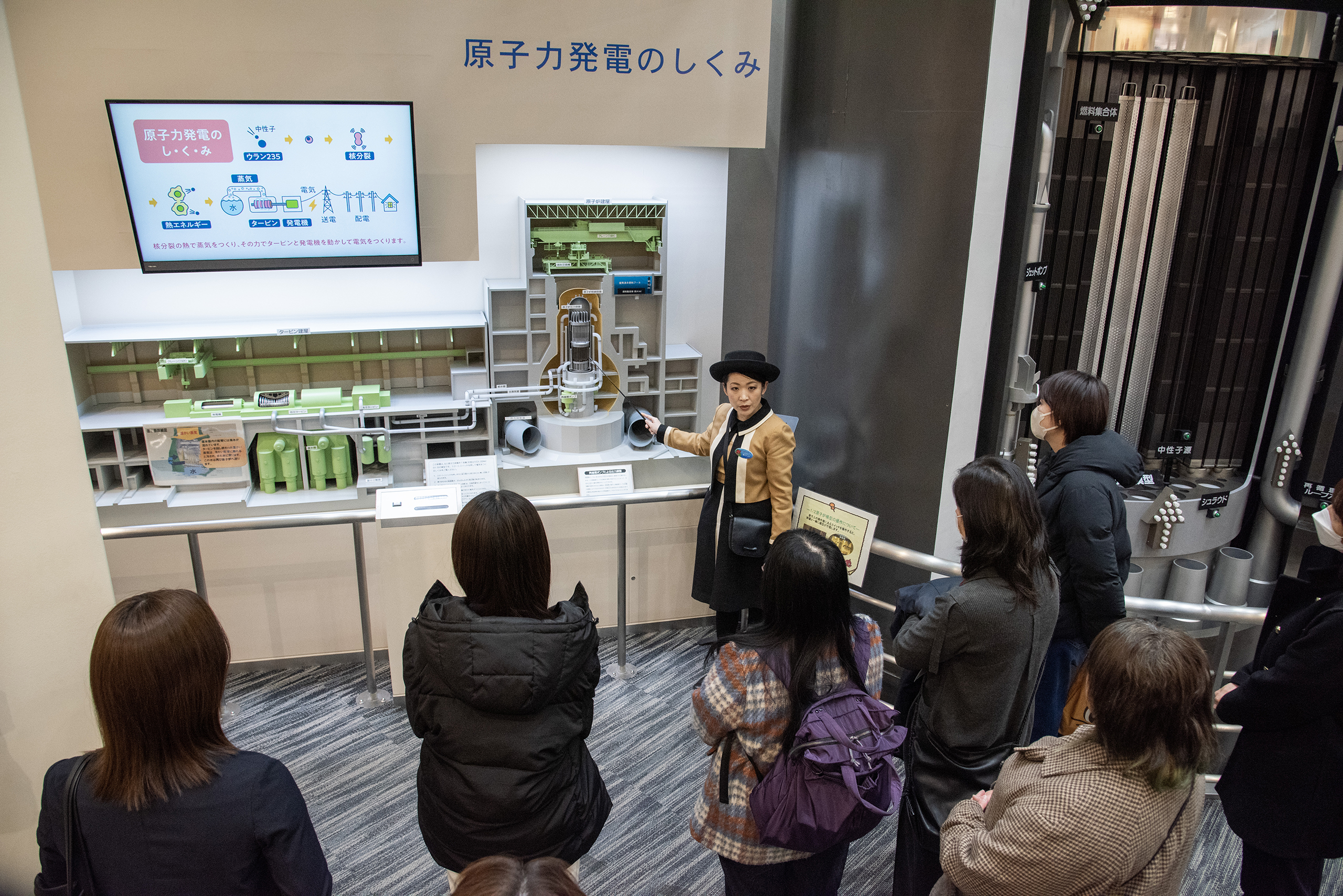 その後は、14年ぶりに再稼働を果たした女川原子力発電所の見学です。PRセンターでは、模型を見ながら原子力発電の仕組みを学習しました。