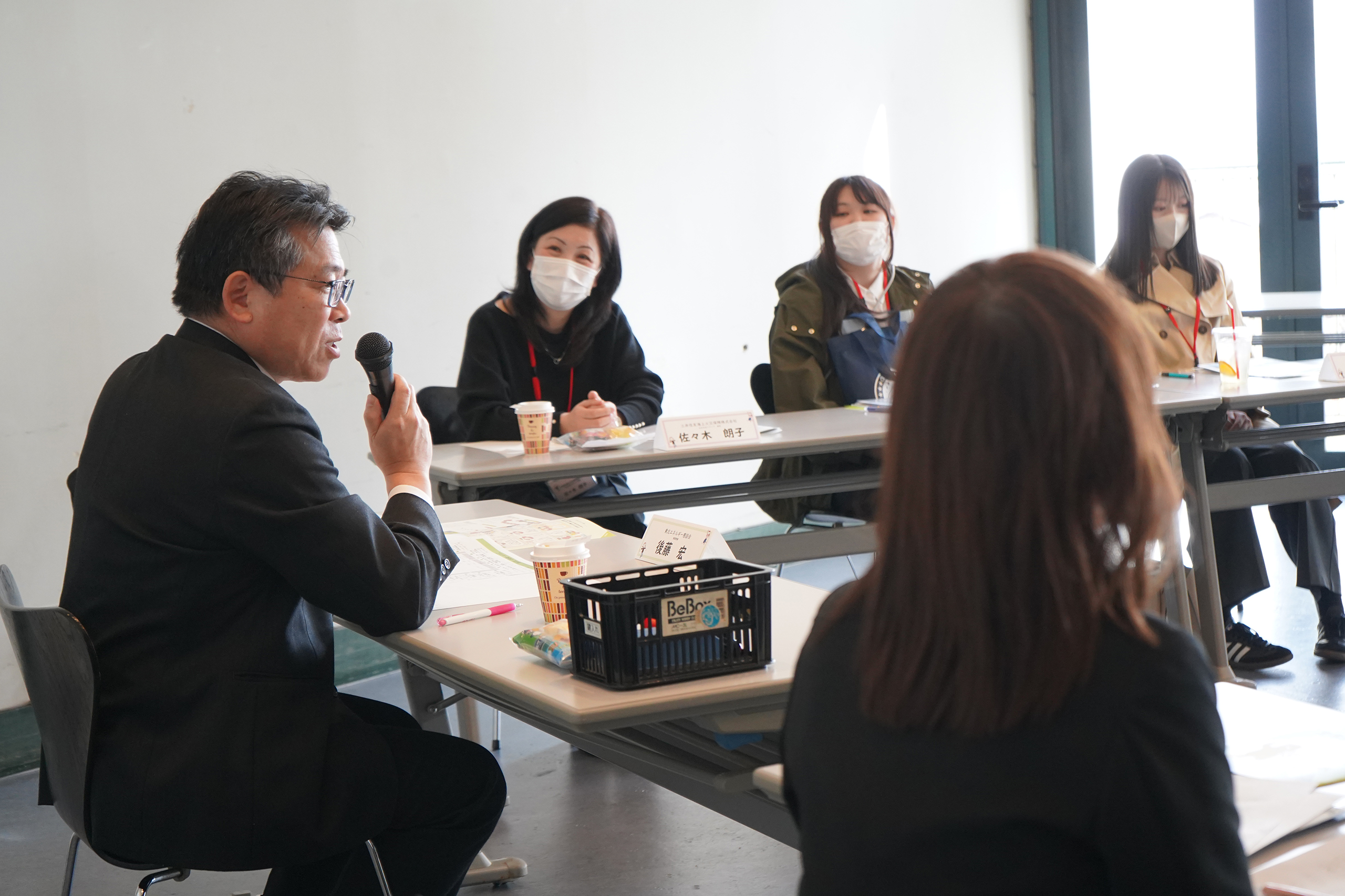 午後は七ヶ浜国際村へ移動し、参加者がエネルギーセミナーでの経験をシェアする「テーブルトーク」を実施。施設見学を通して感じたことや、セミナーに初めて参加した感想などを一人ずつ発表しました。