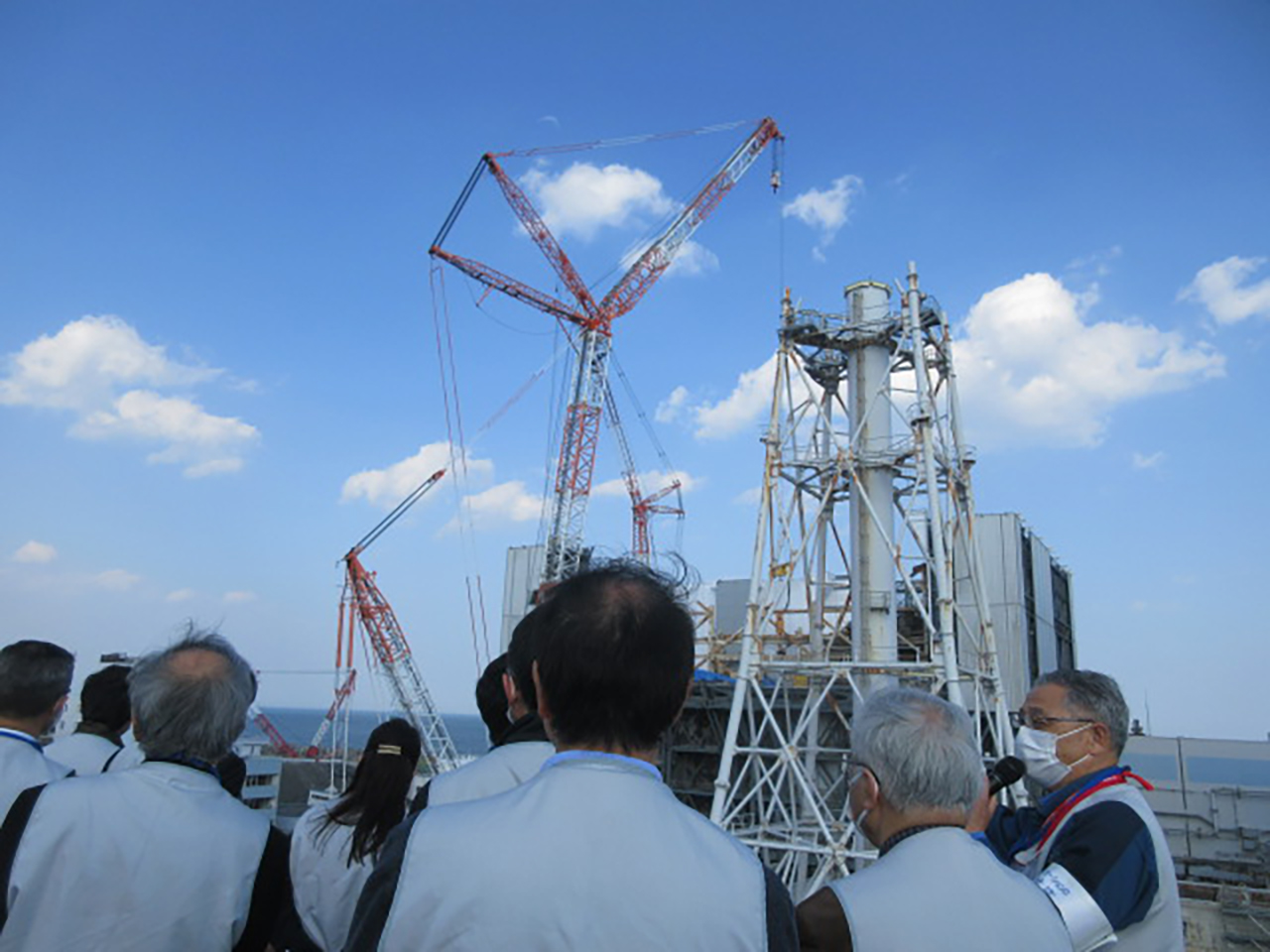 当日は、廃炉資料館を見学したのち、福島第一原子力発電所の概要説明を受け、発電所構内を一巡しながら、汚染水対策、原子炉建屋の解体作業、ALPS処理水海洋放出関連設備などを視察し、廃炉事業に係る理解を深めました。
