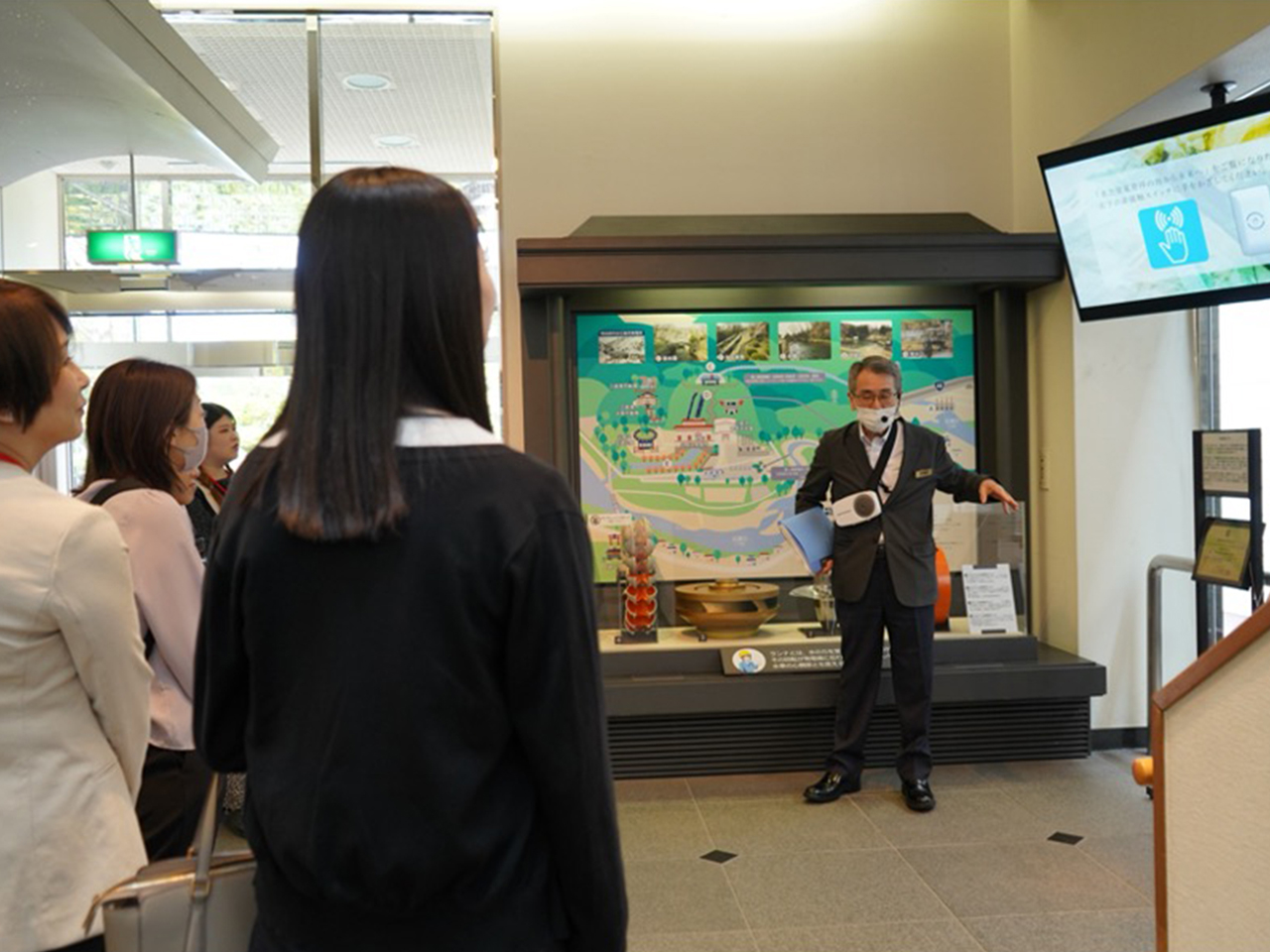発電所に隣接する三居沢電気百年館で、三居沢発電所の歴史や水力発電のしくみを学んだあと、長い階段を上って広瀬川から取り入れた水を貯める貯水槽や落差約27mで発電所へと至る水圧鋼管などを見学しました。その後、明治41年に建てられ、国の登録有形文化財や経済産業省の近代化産業遺産に認定されている三居沢発電所の中で、実際の水車や発電機を見ながら説明を受けました。
