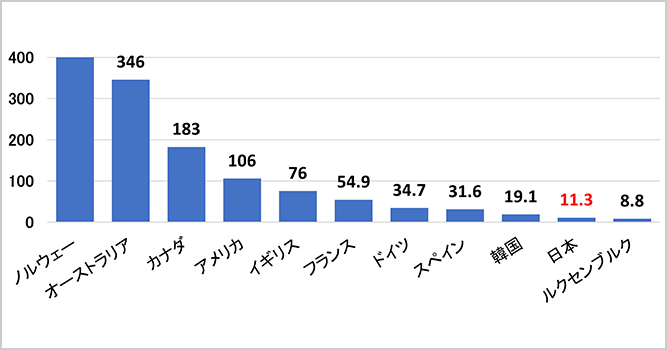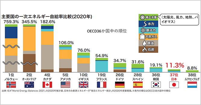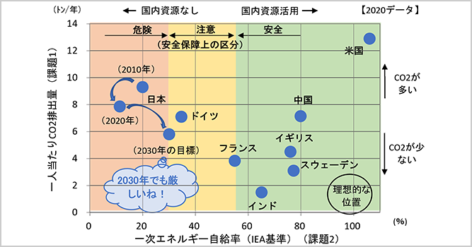19. 一人当たりCO2排出量と一次エネルギー自給率