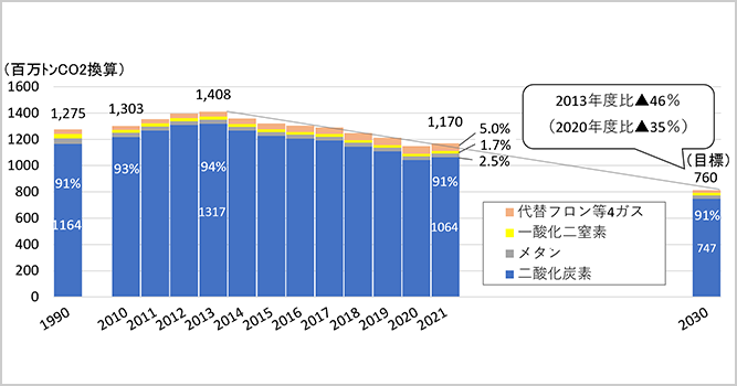 9. 温室効果ガスの排出量の推移(1990年~2030年)