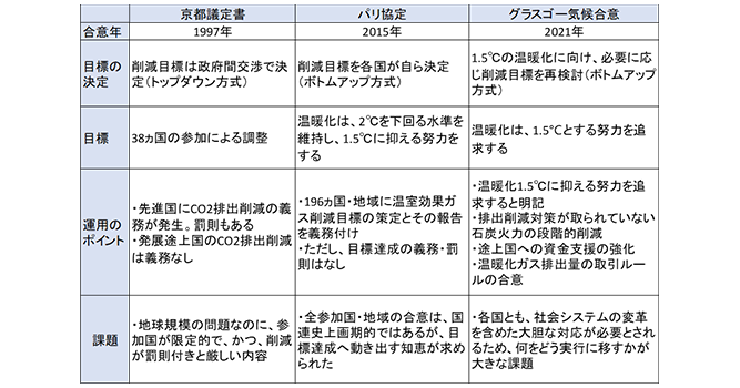 12. 京都議定書、パリ協定、グラスゴー気候合意の比較