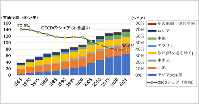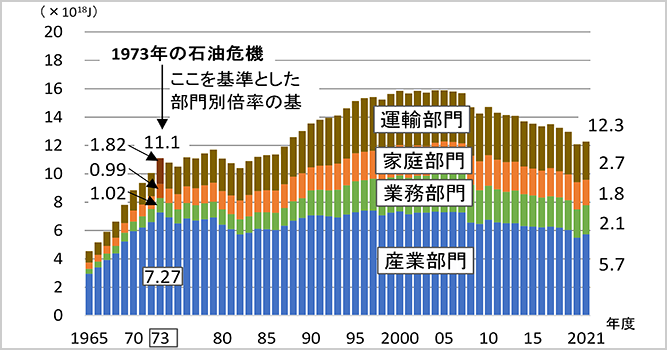 14. 部門別エネルギー消費量の推移(1965~2021)