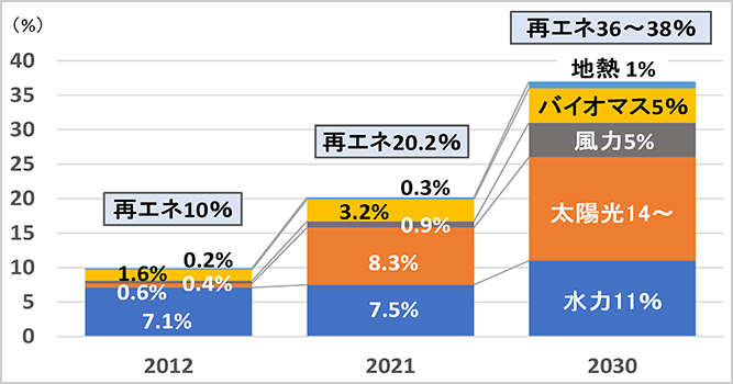 35. 発電電力量割合の歴史と2050年の目標(約1世紀の変遷)