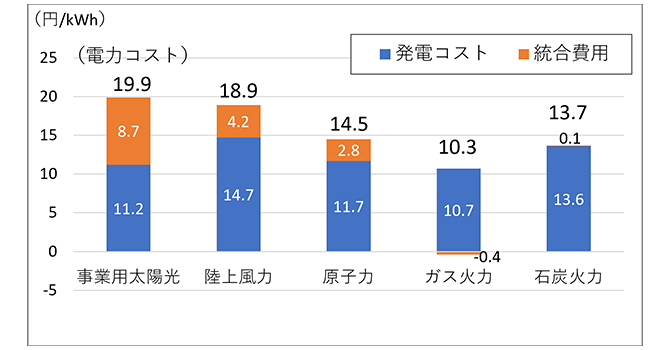 22. 電源別の電力コスト(発電コスト+統合費用の合計)