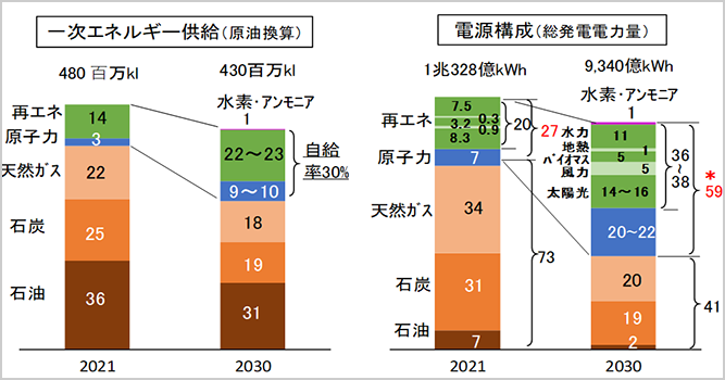 25. 2030年の一次エネルギー供給及び電源構成内訳